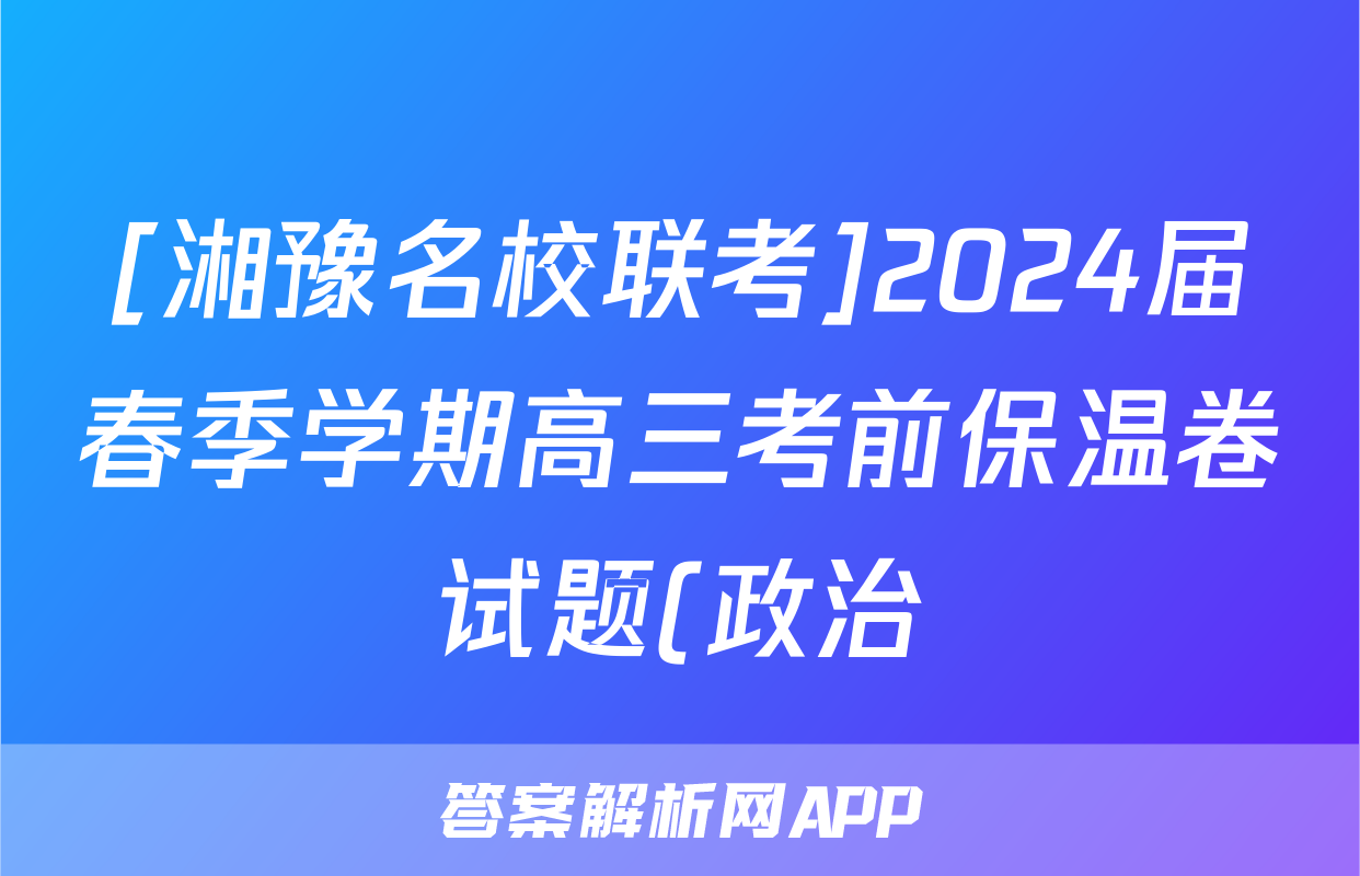 [湘豫名校联考]2024届春季学期高三考前保温卷试题(政治)
