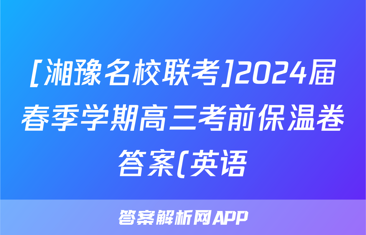 [湘豫名校联考]2024届春季学期高三考前保温卷答案(英语)