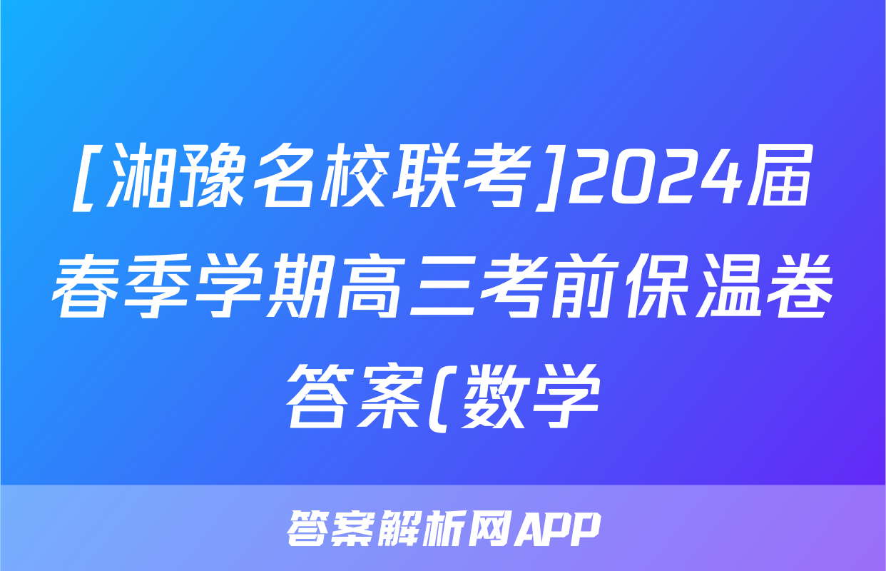 [湘豫名校联考]2024届春季学期高三考前保温卷答案(数学)正在持续更新,本期2024衡中同卷单元卷答案网为大家整理了相关试题及答案,供大家查缺补漏,高效提升成绩。