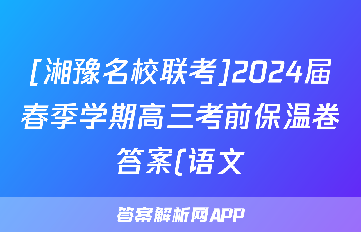 [湘豫名校联考]2024届春季学期高三考前保温卷答案(语文)