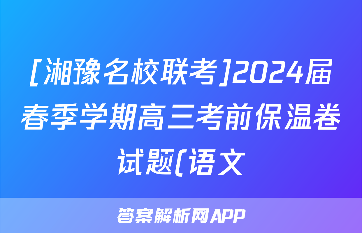 [湘豫名校联考]2024届春季学期高三考前保温卷试题(语文)