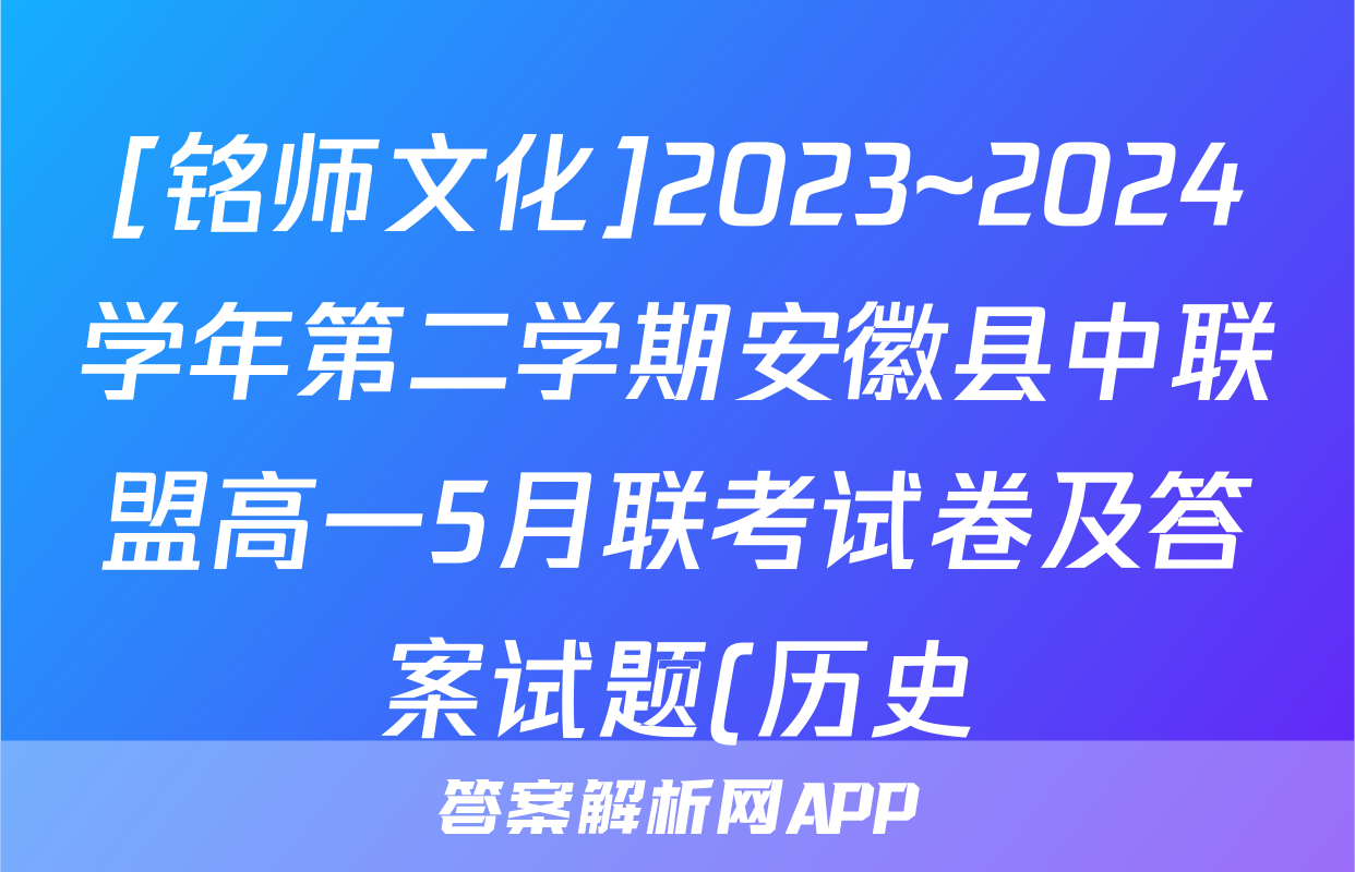 [铭师文化]2023~2024学年第二学期安徽县中联盟高一5月联考试卷及答案试题(历史)