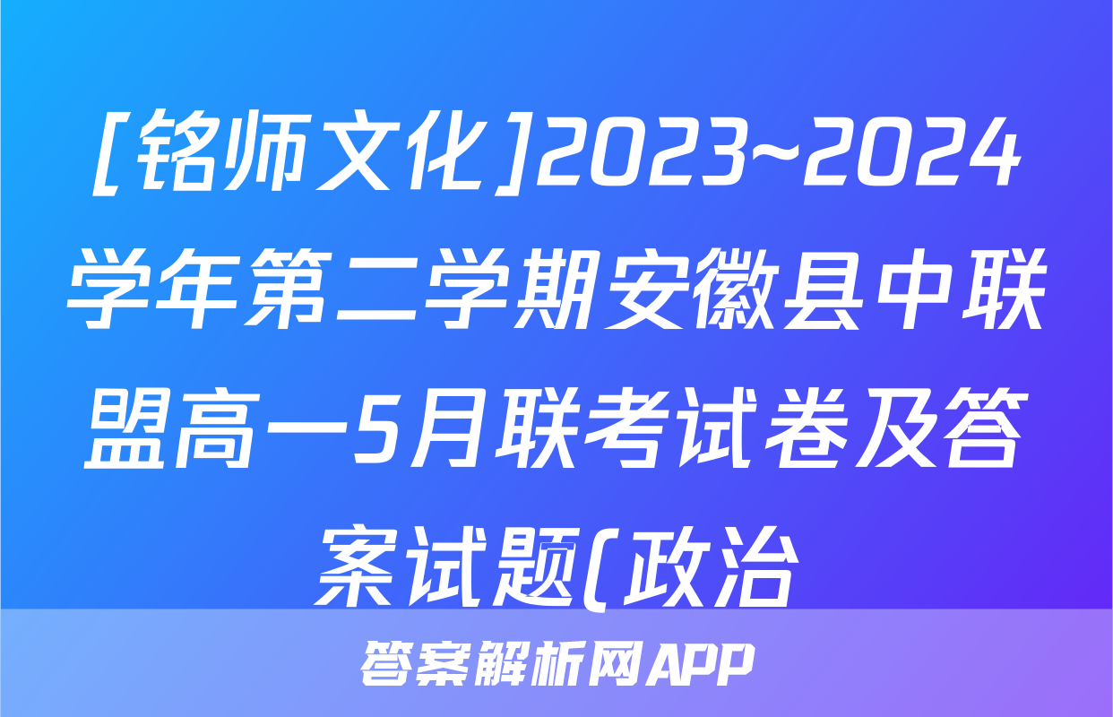[铭师文化]2023~2024学年第二学期安徽县中联盟高一5月联考试卷及答案试题(政治)