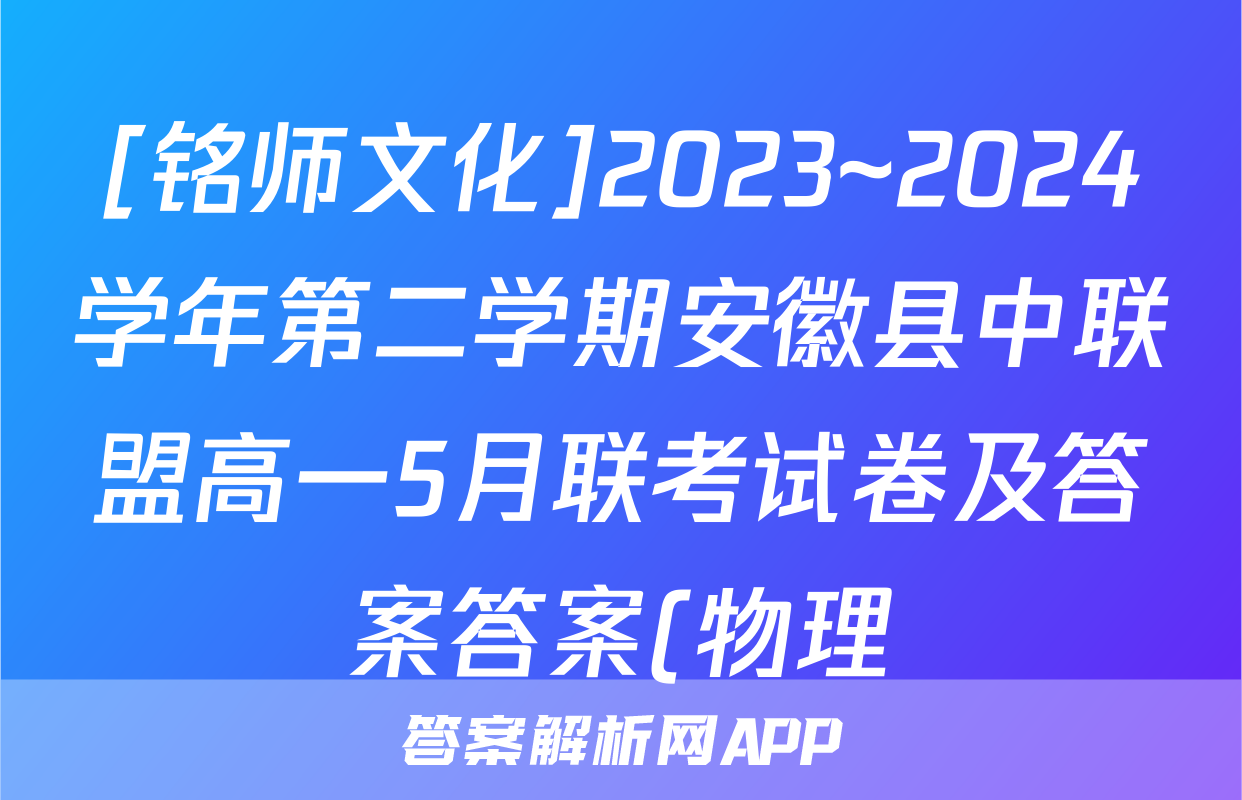 [铭师文化]2023~2024学年第二学期安徽县中联盟高一5月联考试卷及答案答案(物理)