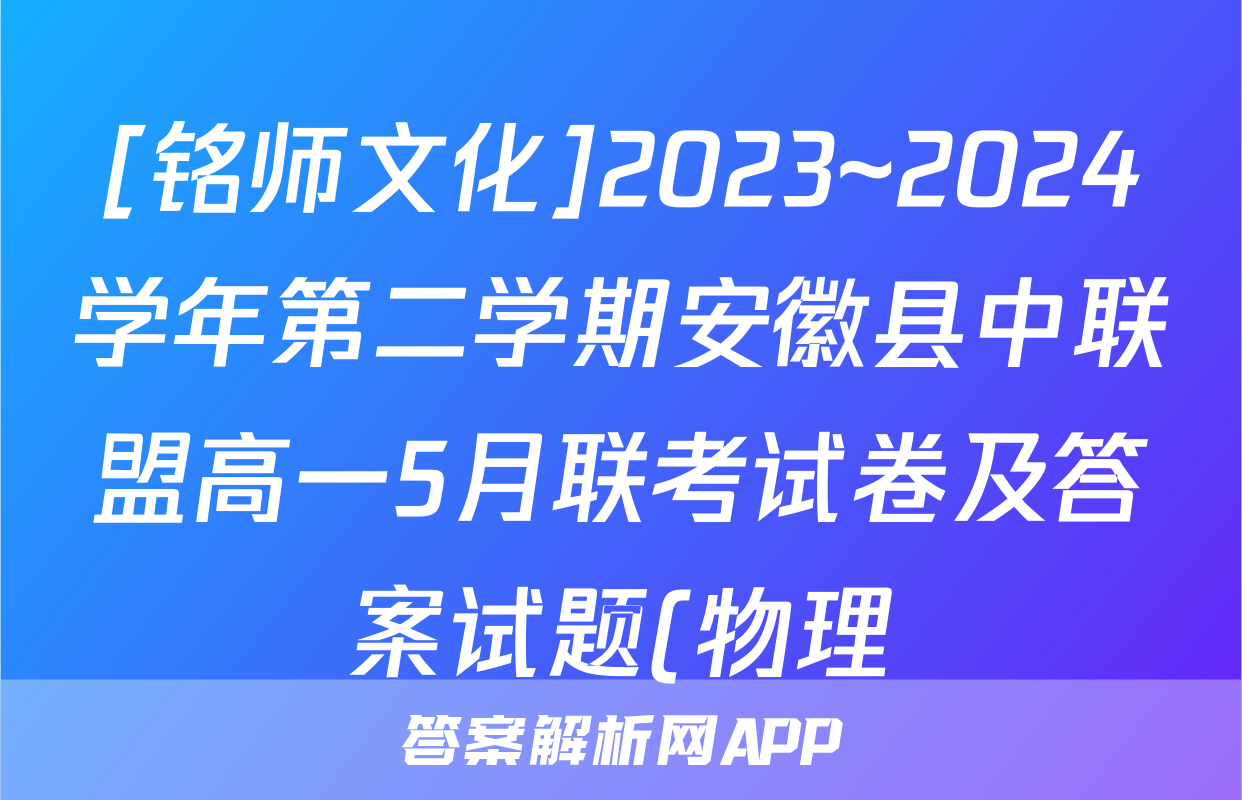 [铭师文化]2023~2024学年第二学期安徽县中联盟高一5月联考试卷及答案试题(物理)