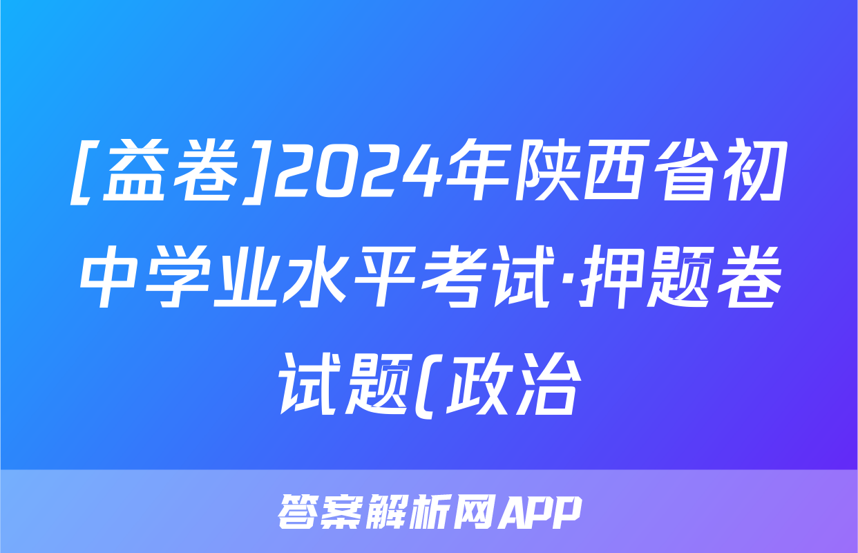 [益卷]2024年陕西省初中学业水平考试·押题卷试题(政治)