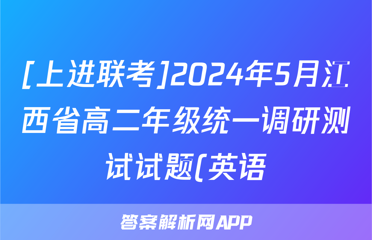 [上进联考]2024年5月江西省高二年级统一调研测试试题(英语)