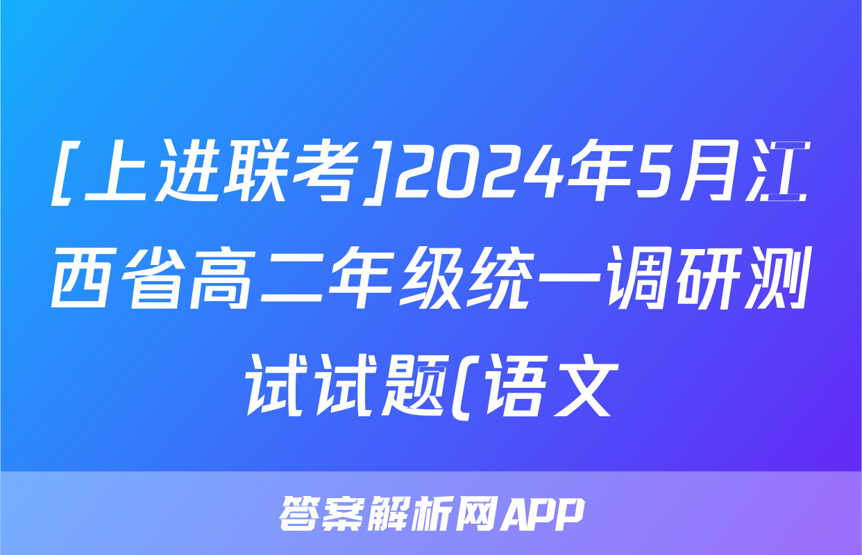 [上进联考]2024年5月江西省高二年级统一调研测试试题(语文)正在持续更新,本期2024衡中同卷单元卷答案网为大家整理了相关试题及答案,供大家查缺补漏,高效提升成绩。