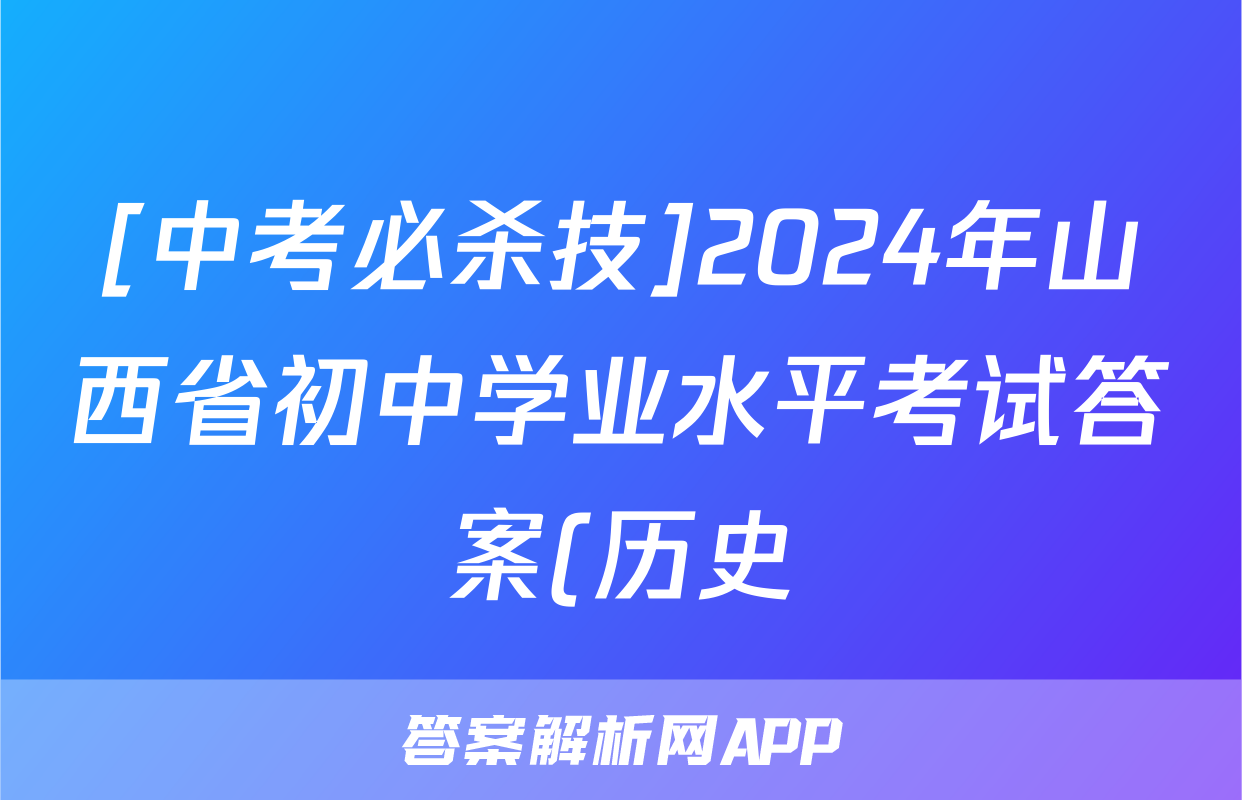 [中考必杀技]2024年山西省初中学业水平考试答案(历史)