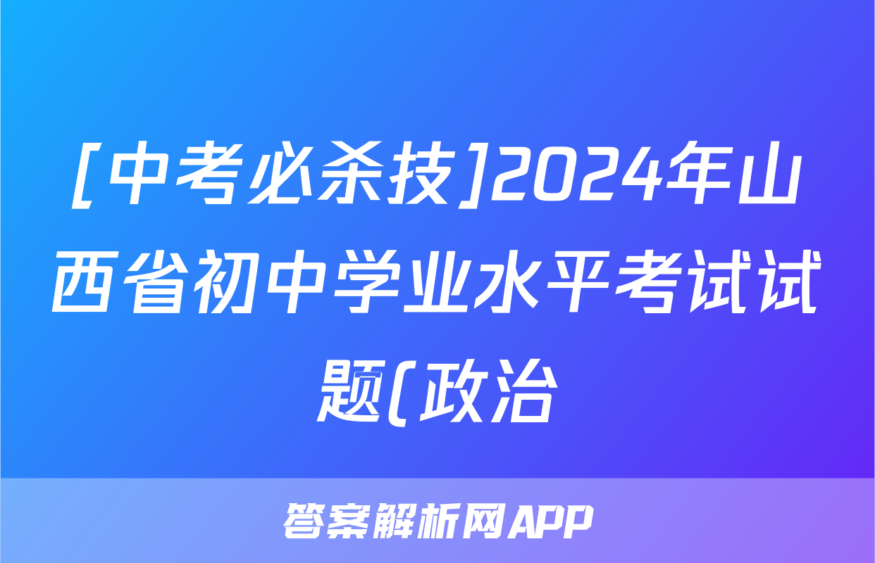 [中考必杀技]2024年山西省初中学业水平考试试题(政治)