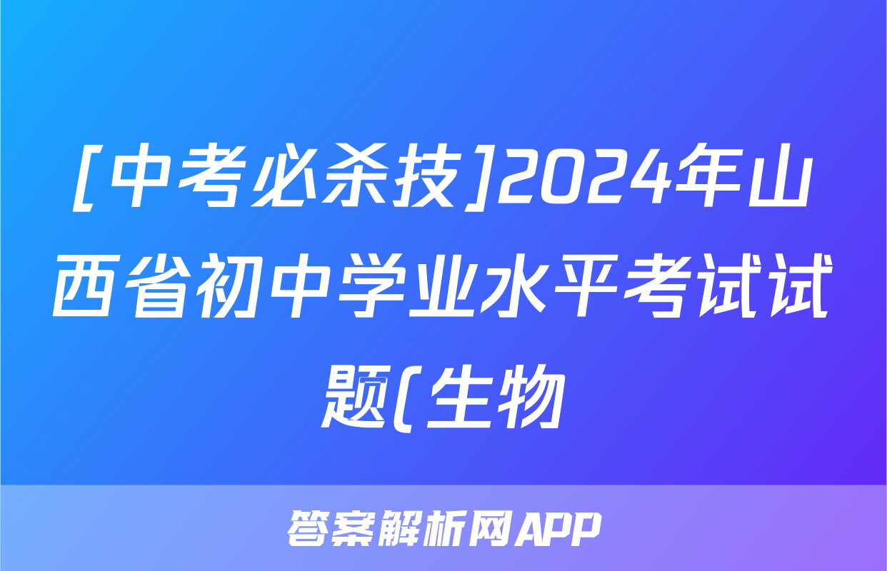 [中考必杀技]2024年山西省初中学业水平考试试题(生物)