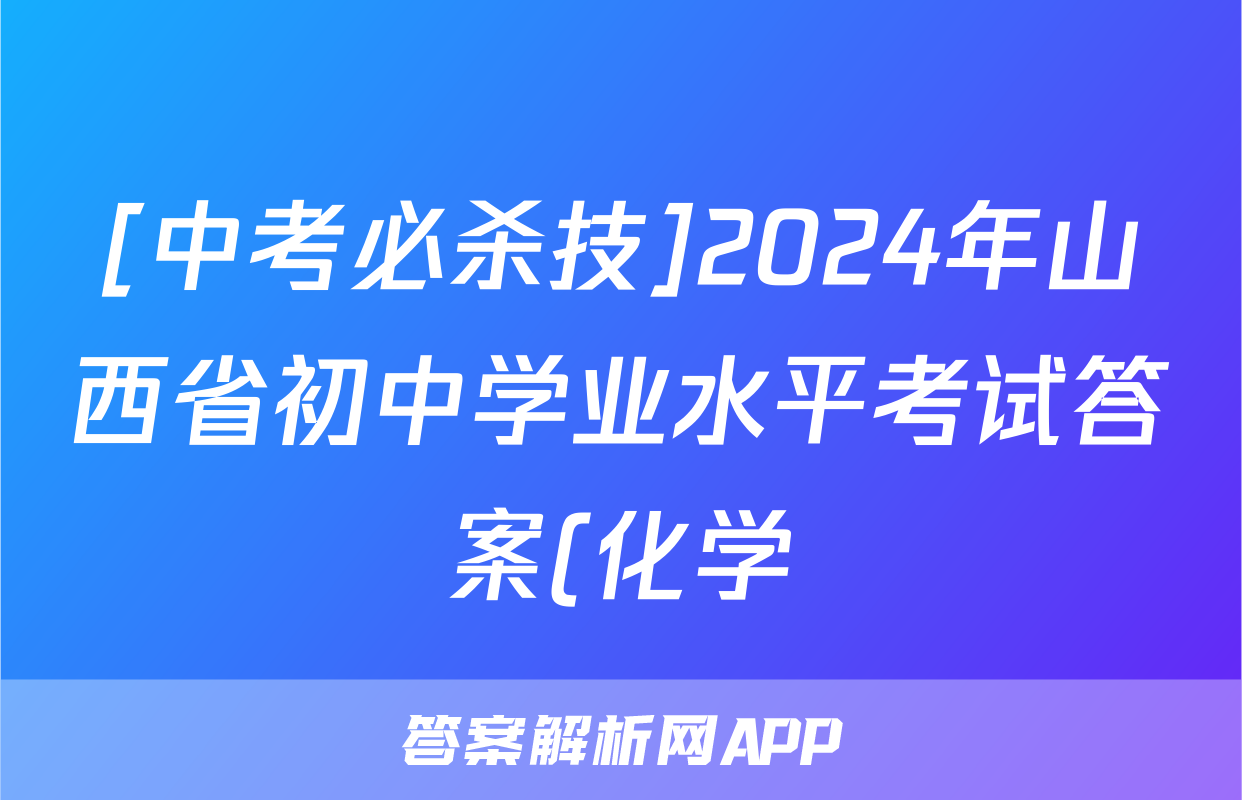 [中考必杀技]2024年山西省初中学业水平考试答案(化学)