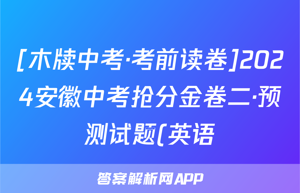 [木牍中考·考前读卷]2024安徽中考抢分金卷二·预测试题(英语)