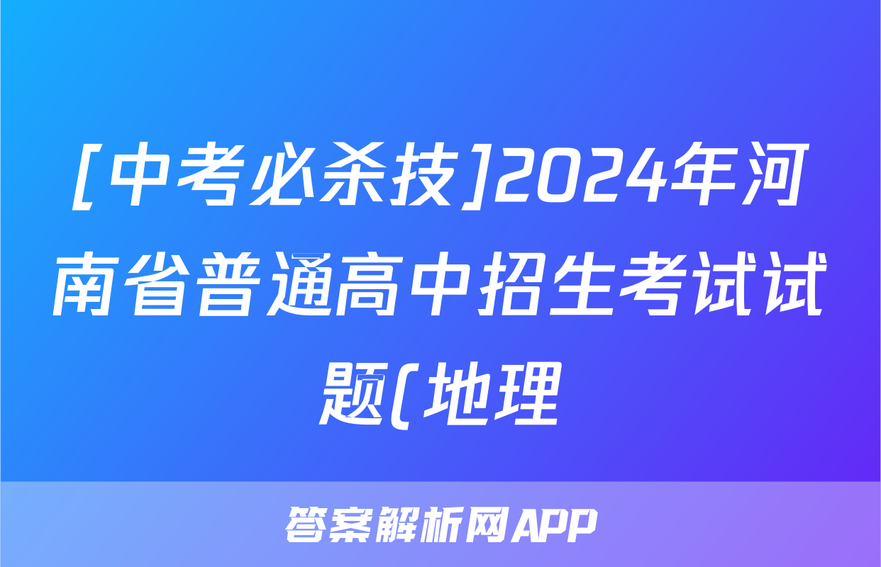 [中考必杀技]2024年河南省普通高中招生考试试题(地理)