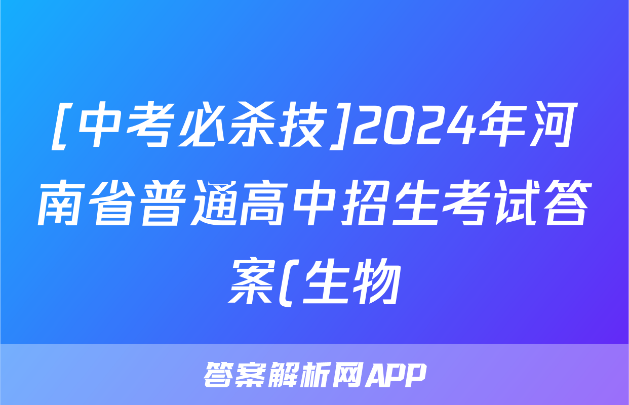 [中考必杀技]2024年河南省普通高中招生考试答案(生物)