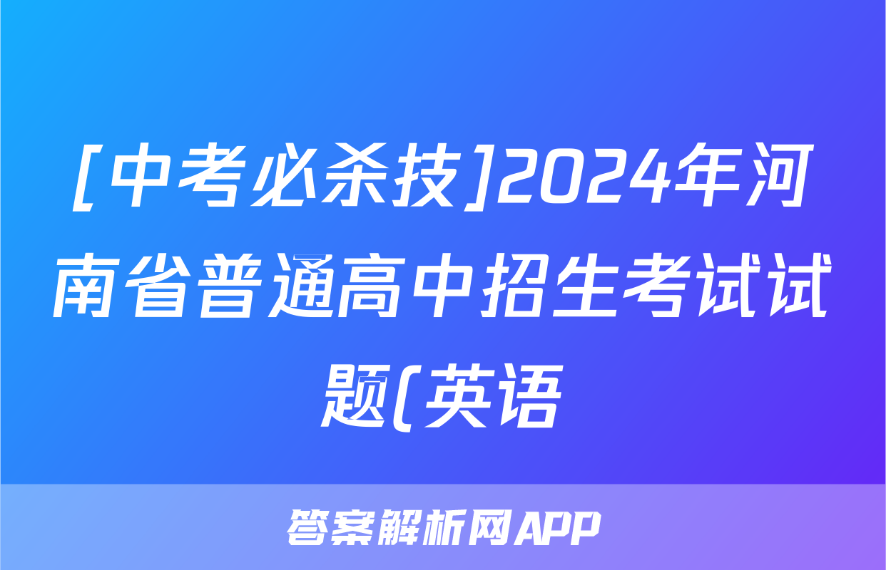 [中考必杀技]2024年河南省普通高中招生考试试题(英语)