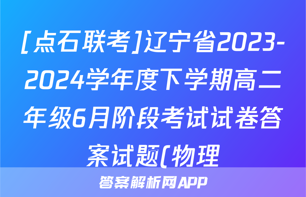 [点石联考]辽宁省2023-2024学年度下学期高二年级6月阶段考试试卷答案试题(物理)