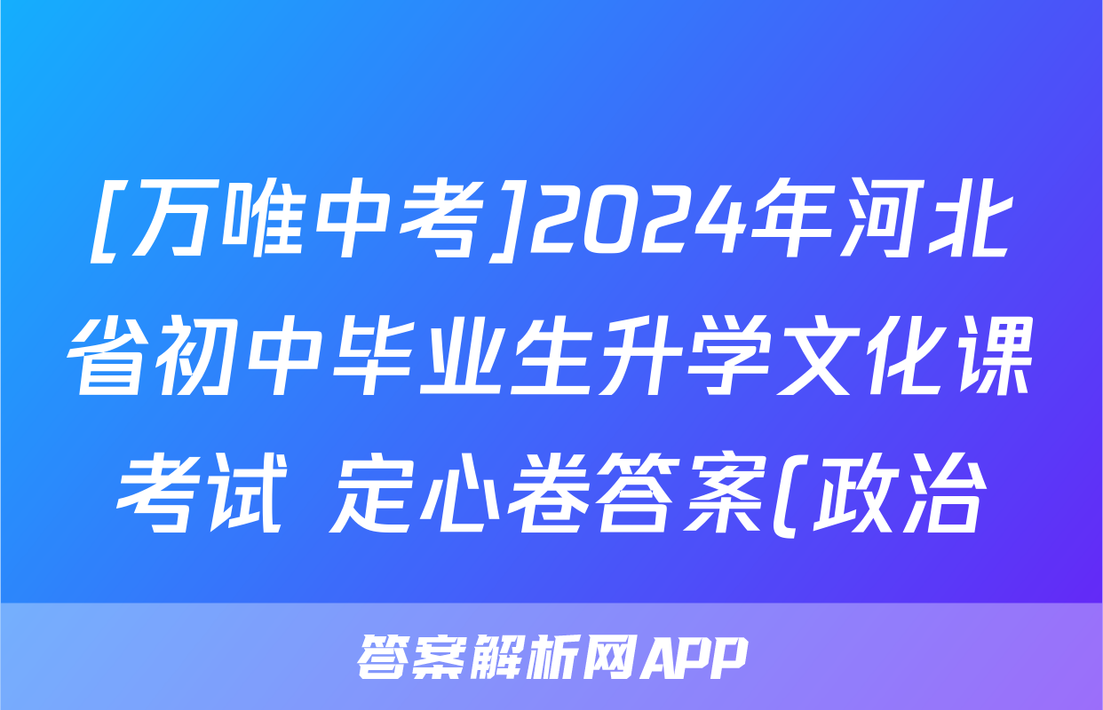 [万唯中考]2024年河北省初中毕业生升学文化课考试 定心卷答案(政治)