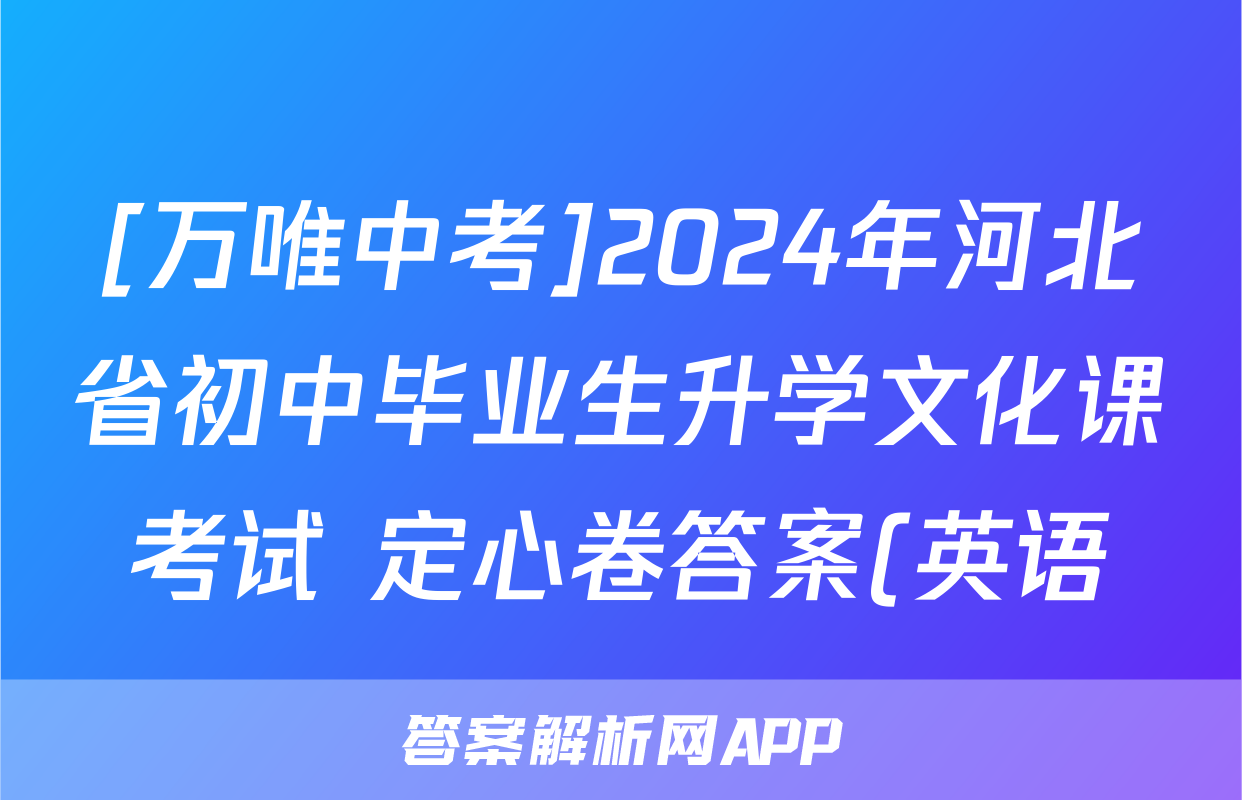 [万唯中考]2024年河北省初中毕业生升学文化课考试 定心卷答案(英语)