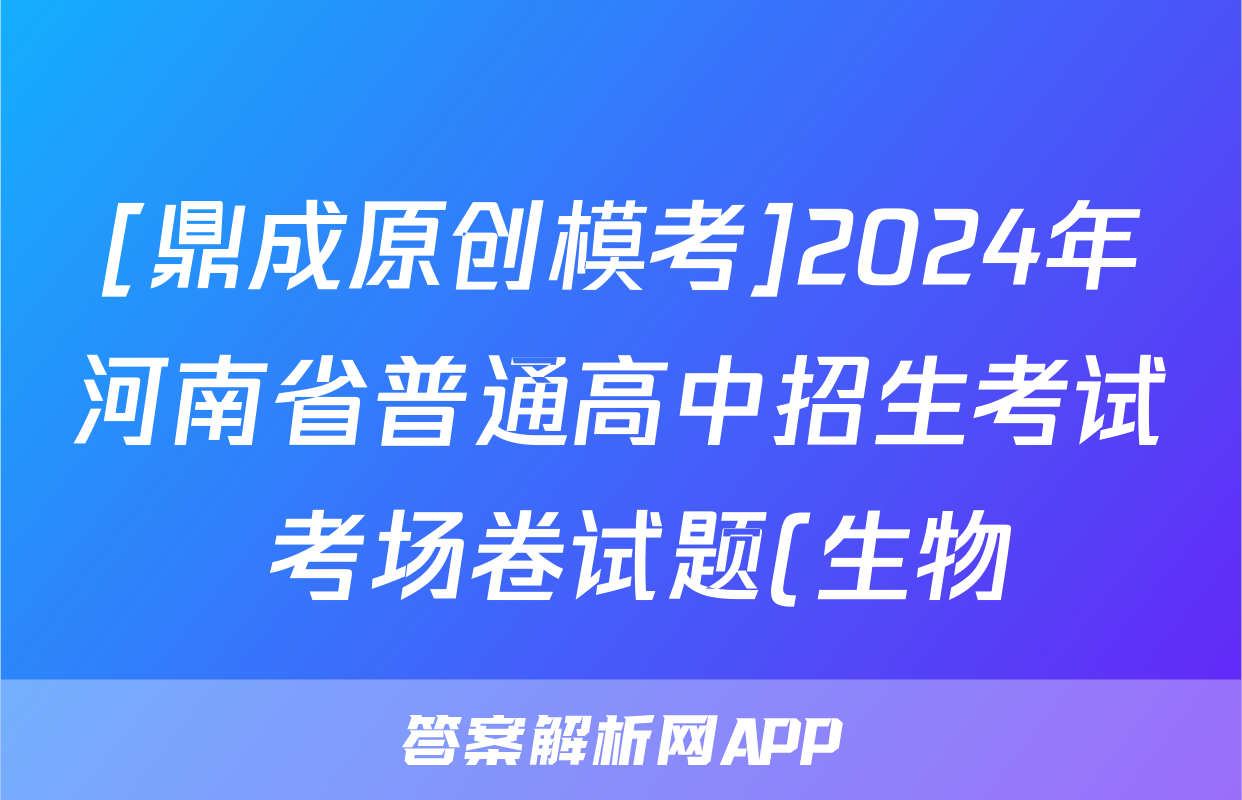 [鼎成原创模考]2024年河南省普通高中招生考试 考场卷试题(生物)正在持续更新,本期2024衡中同卷单元卷答案网为大家整理了相关试题及答案,供大家查缺补漏,高效提升成绩。