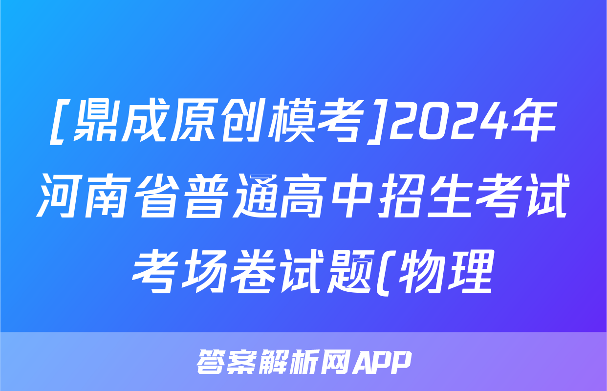 [鼎成原创模考]2024年河南省普通高中招生考试 考场卷试题(物理)