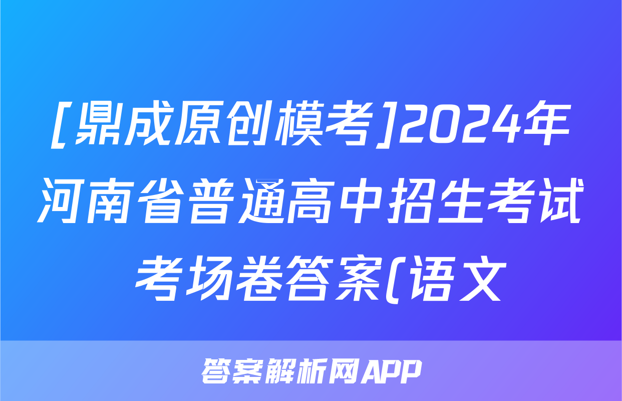 [鼎成原创模考]2024年河南省普通高中招生考试 考场卷答案(语文)正在持续更新,本期2024衡中同卷单元卷答案网为大家整理了相关试题及答案,供大家查缺补漏,高效提升成绩。
