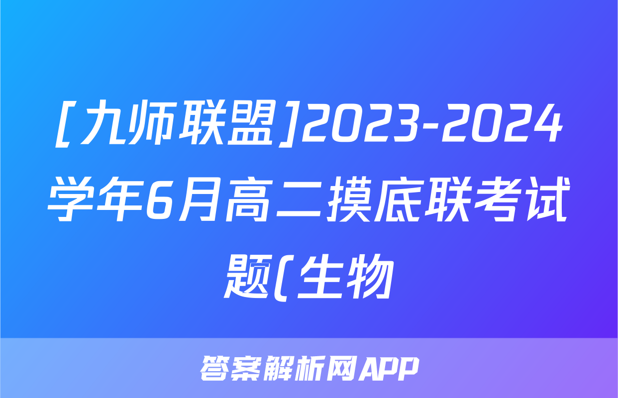 [九师联盟]2023-2024学年6月高二摸底联考试题(生物)
