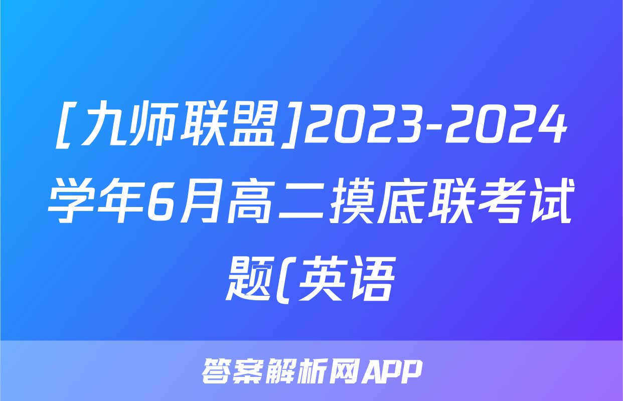[九师联盟]2023-2024学年6月高二摸底联考试题(英语)正在持续更新,本期2024衡中同卷单元卷答案网为大家整理了相关试题及答案,供大家查缺补漏,高效提升成绩。