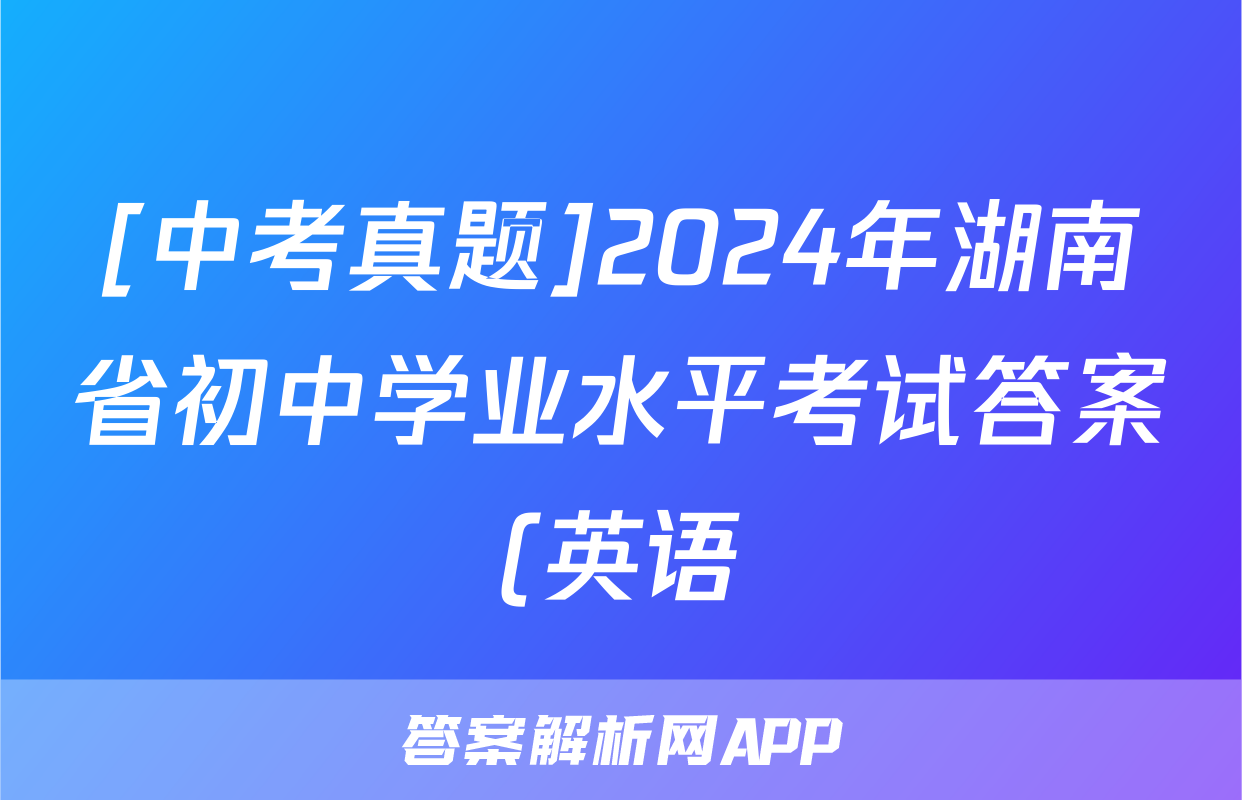 [中考真题]2024年湖南省初中学业水平考试答案(英语)