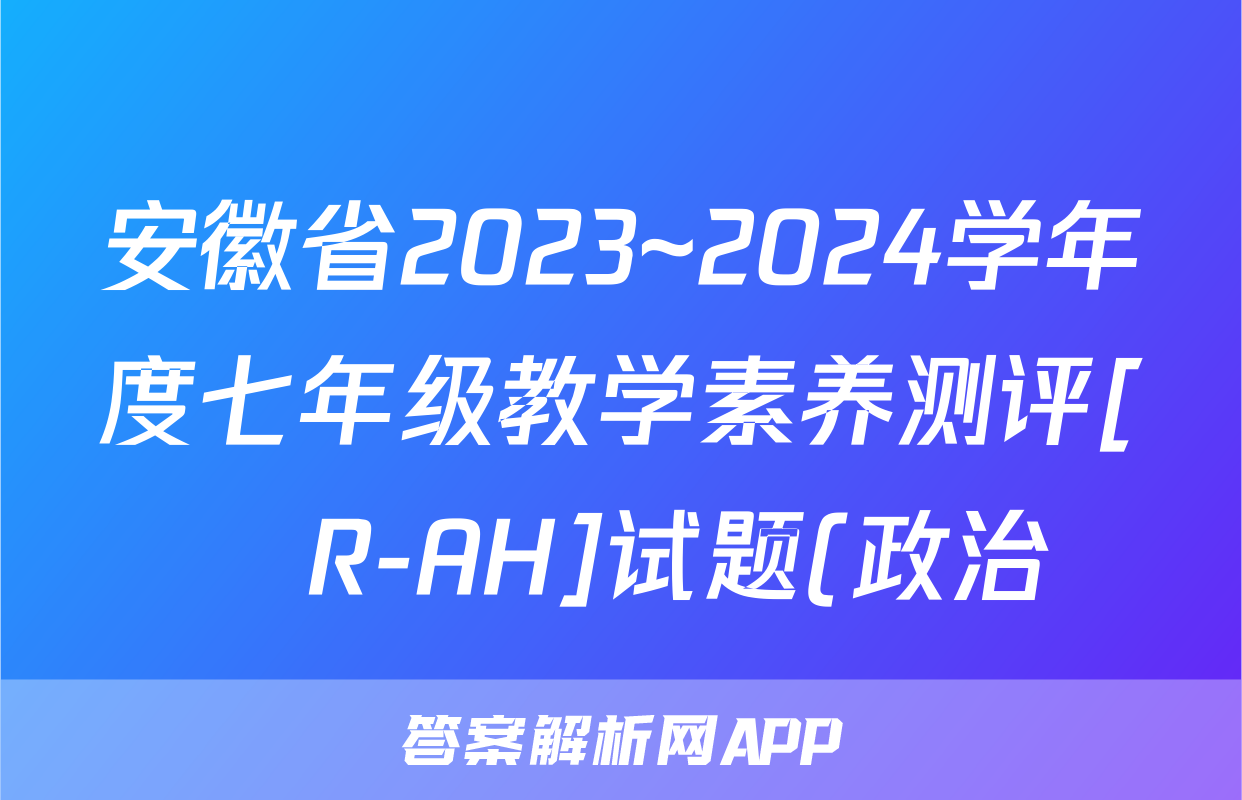 安徽省2023~2024学年度七年级教学素养测评[☐R-AH]试题(政治)
