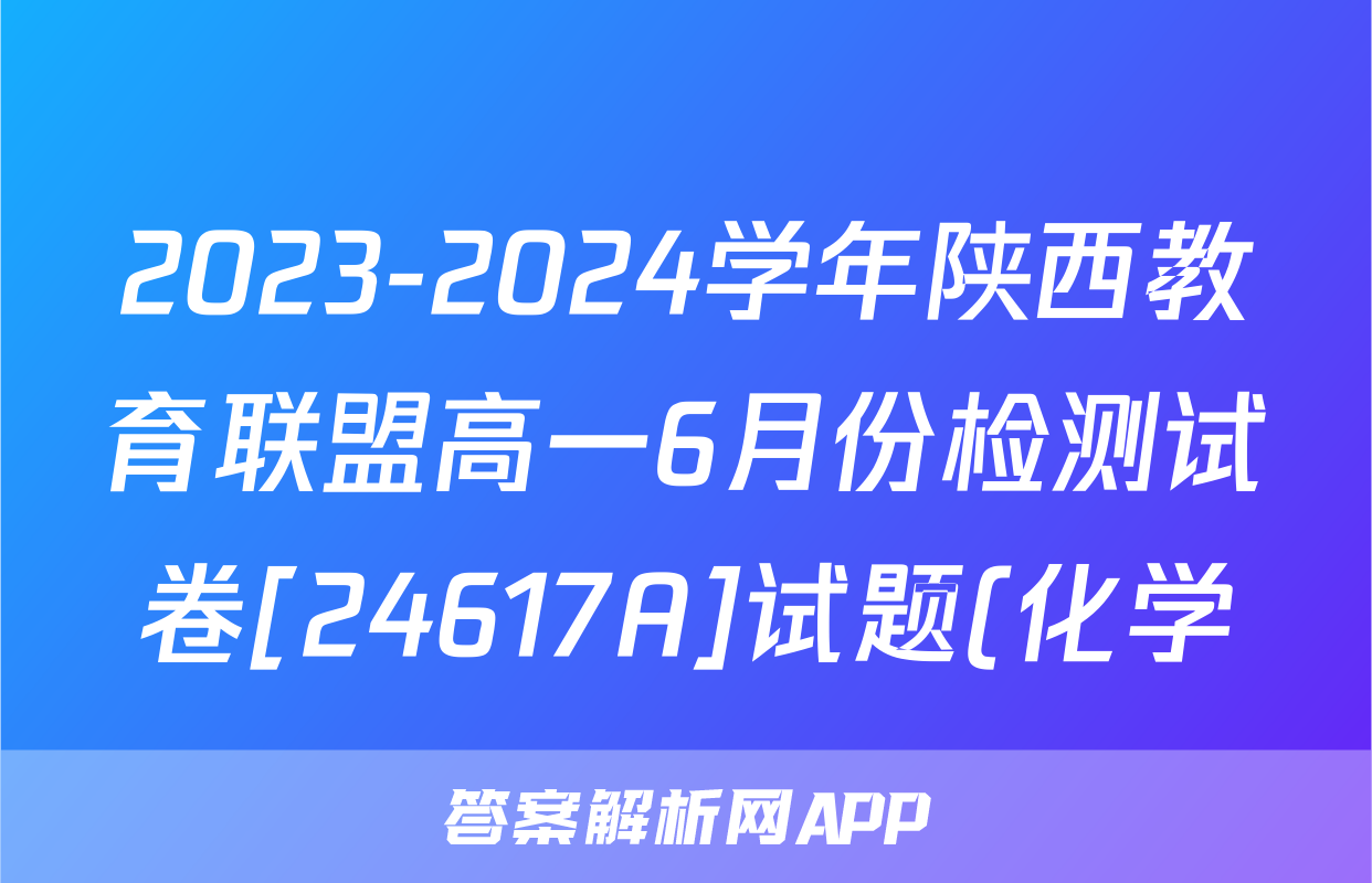 2023-2024学年陕西教育联盟高一6月份检测试卷[24617A]试题(化学)