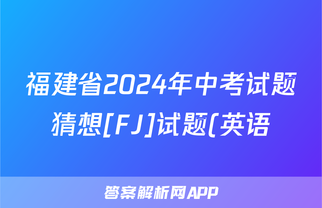 福建省2024年中考试题猜想[FJ]试题(英语)