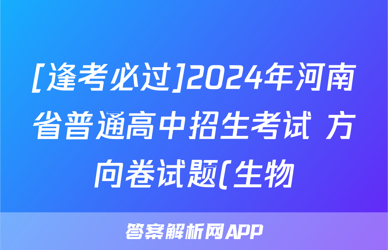 [逢考必过]2024年河南省普通高中招生考试 方向卷试题(生物)