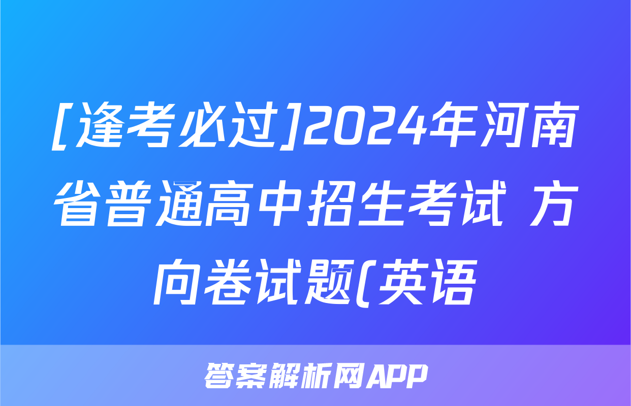 [逢考必过]2024年河南省普通高中招生考试 方向卷试题(英语)