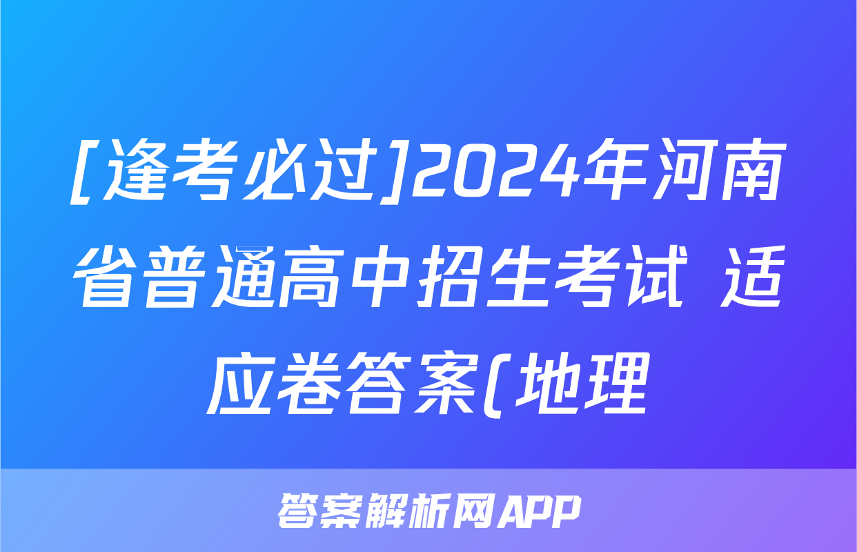 [逢考必过]2024年河南省普通高中招生考试 适应卷答案(地理)