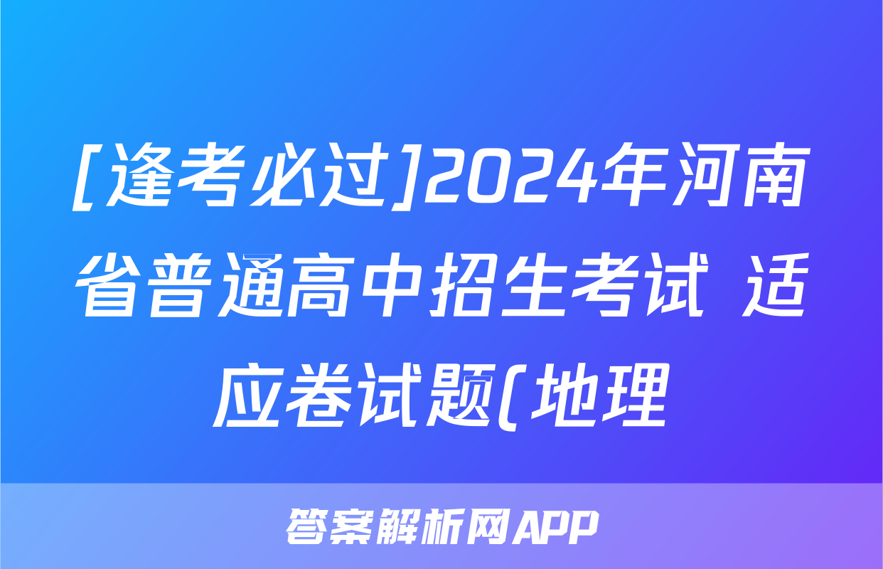 [逢考必过]2024年河南省普通高中招生考试 适应卷试题(地理)