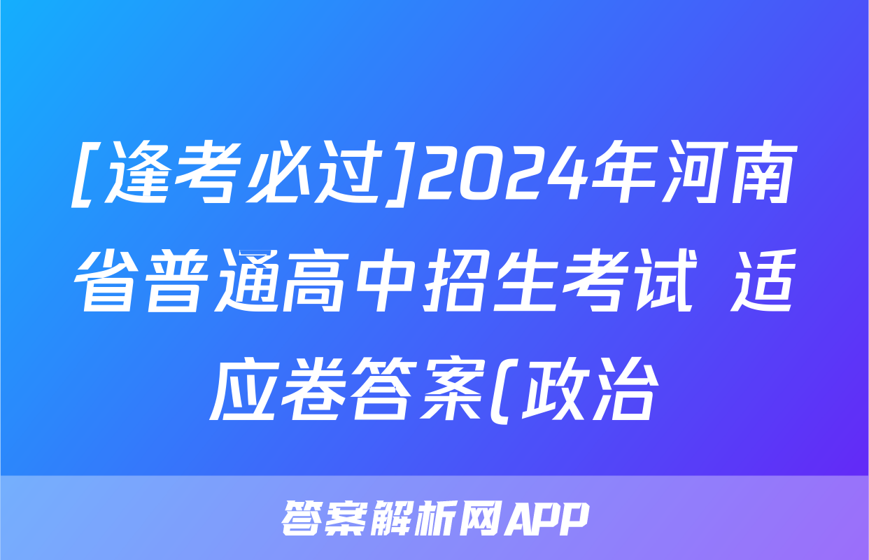 [逢考必过]2024年河南省普通高中招生考试 适应卷答案(政治)