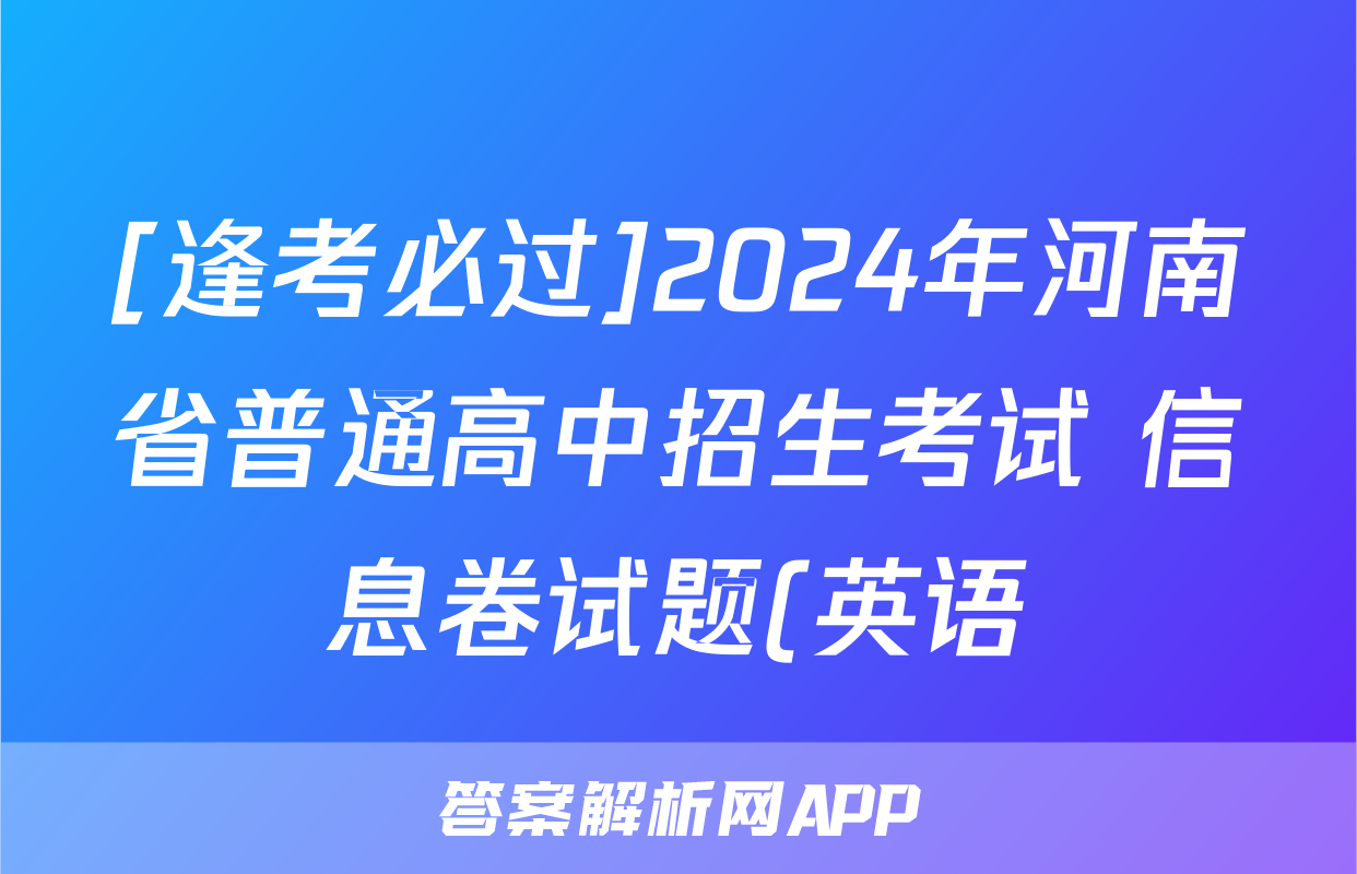 [逢考必过]2024年河南省普通高中招生考试 信息卷试题(英语)