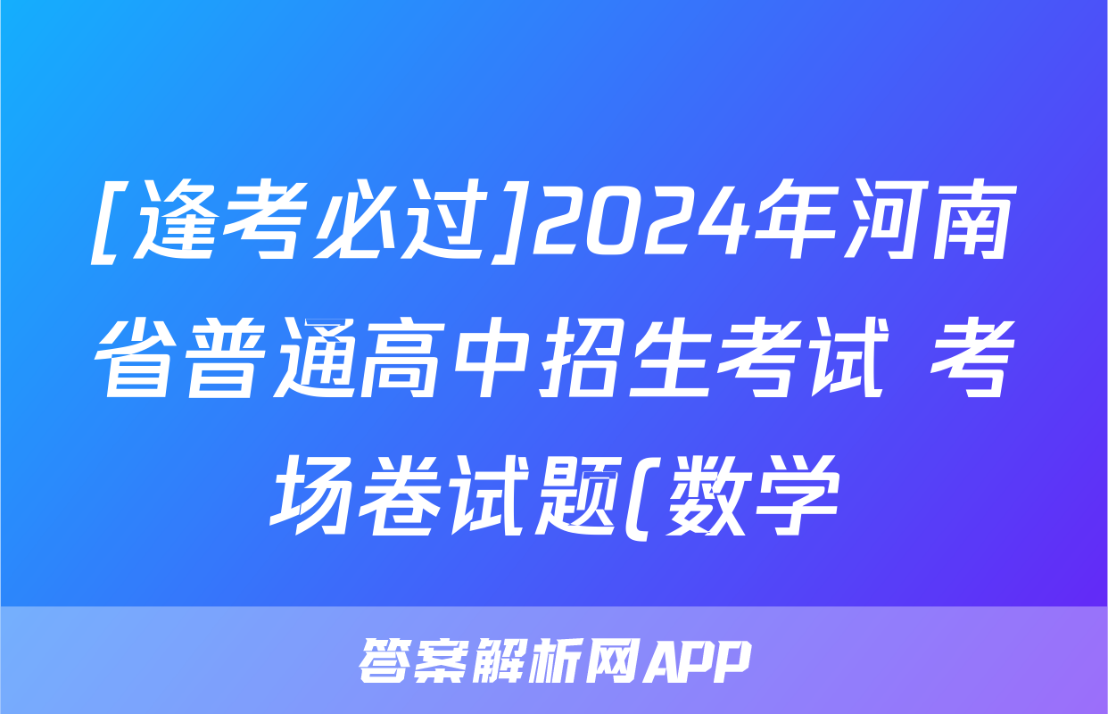 [逢考必过]2024年河南省普通高中招生考试 考场卷试题(数学)