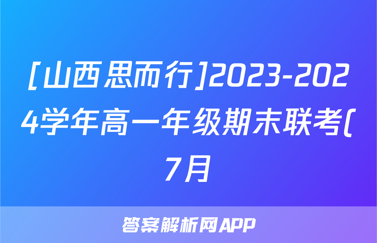 [山西思而行]2023-2024学年高一年级期末联考(7月)生物答案正在持续更新,本期2024衡中同卷单元卷答案网为大家整理了相关试题及答案,供大家查缺补漏,高效提升成绩。