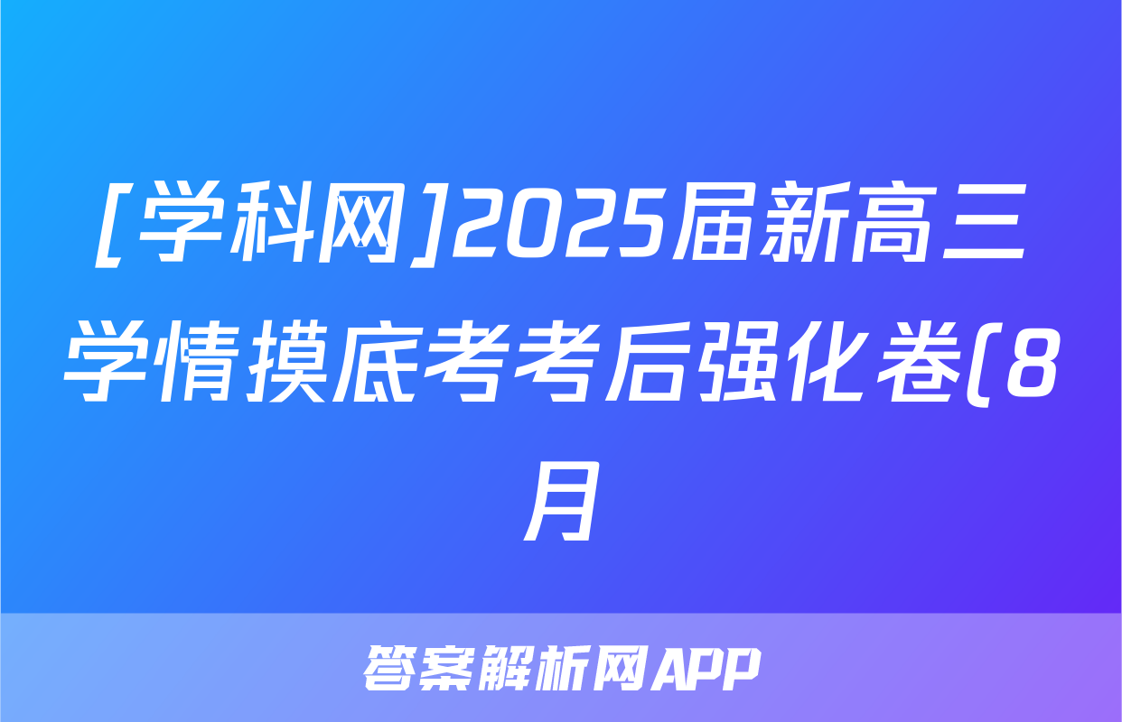 [学科网]2025届新高三学情摸底考考后强化卷(8月)生物(新高考卷)答案