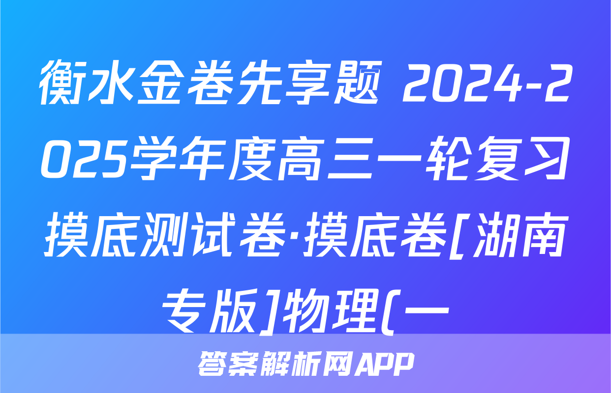 衡水金卷先享题 2024-2025学年度高三一轮复习摸底测试卷·摸底卷[湖南专版]物理(一)1答案