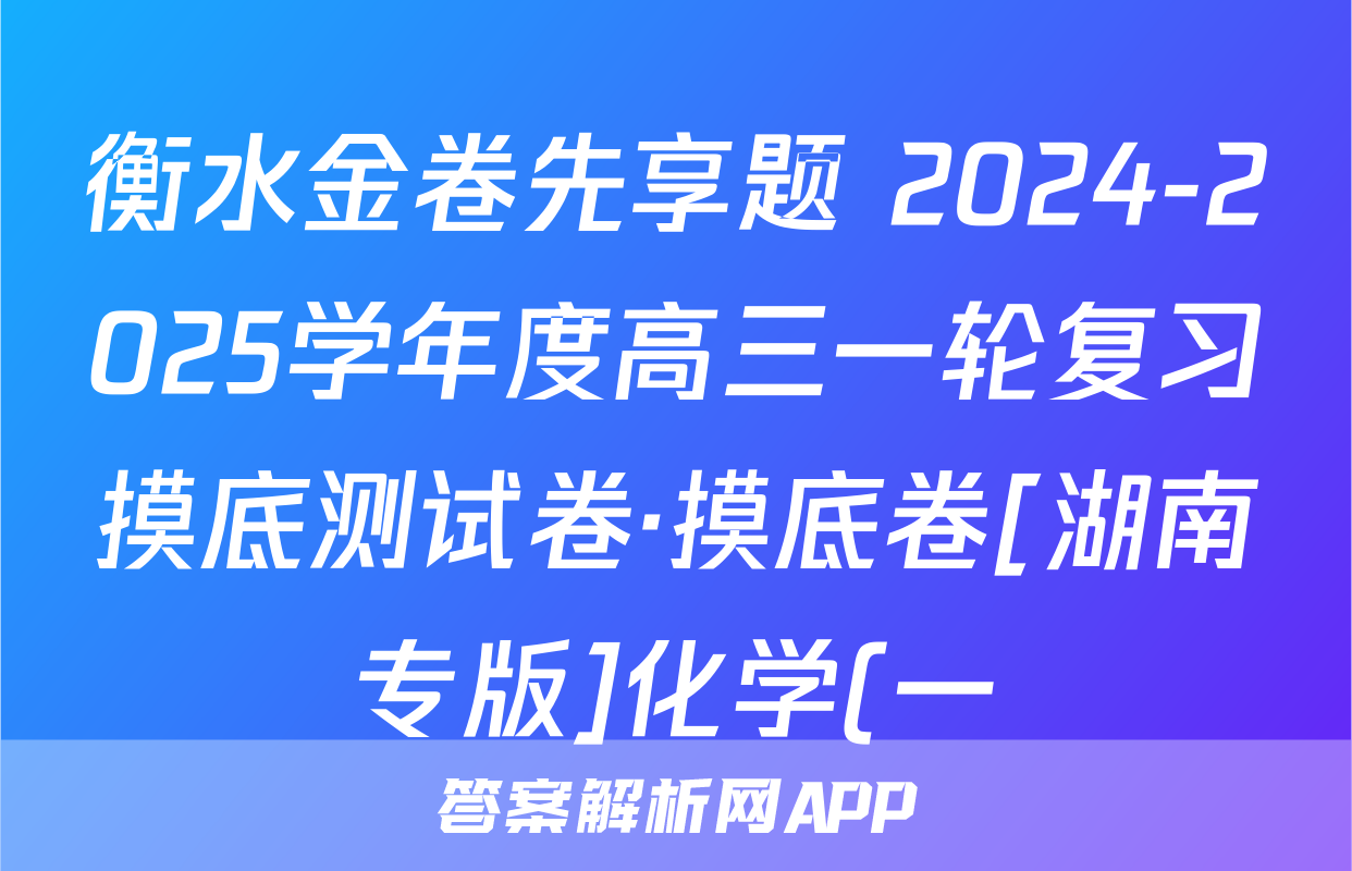 衡水金卷先享题 2024-2025学年度高三一轮复习摸底测试卷·摸底卷[湖南专版]化学(一)1试题