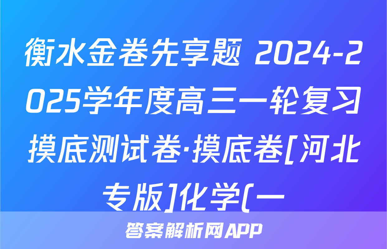 衡水金卷先享题 2024-2025学年度高三一轮复习摸底测试卷·摸底卷[河北专版]化学(一)1试题