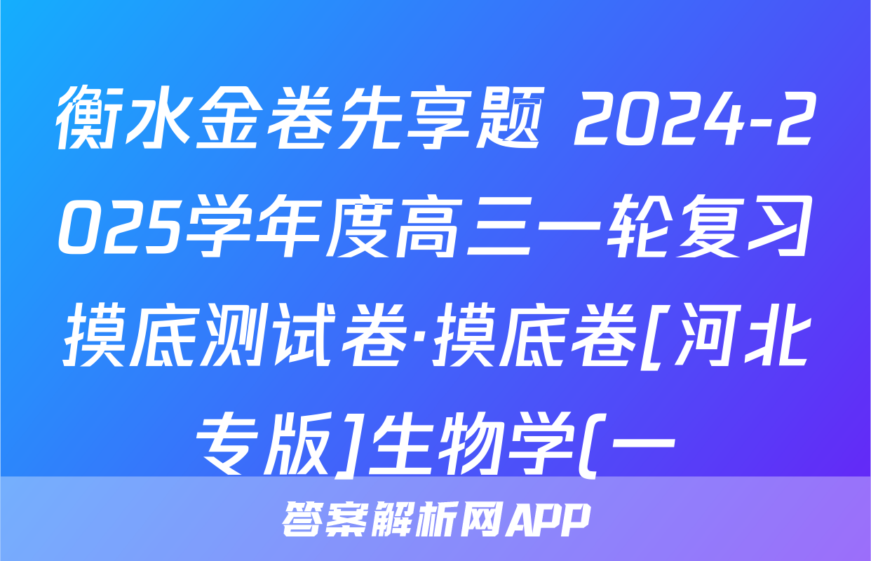 衡水金卷先享题 2024-2025学年度高三一轮复习摸底测试卷·摸底卷[河北专版]生物学(一)1试题