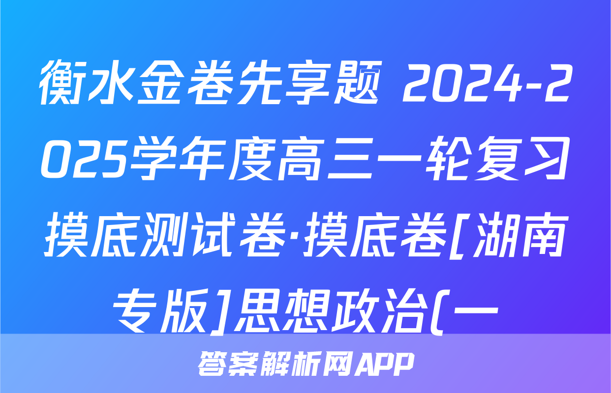 衡水金卷先享题 2024-2025学年度高三一轮复习摸底测试卷·摸底卷[湖南专版]思想政治(一)1答案