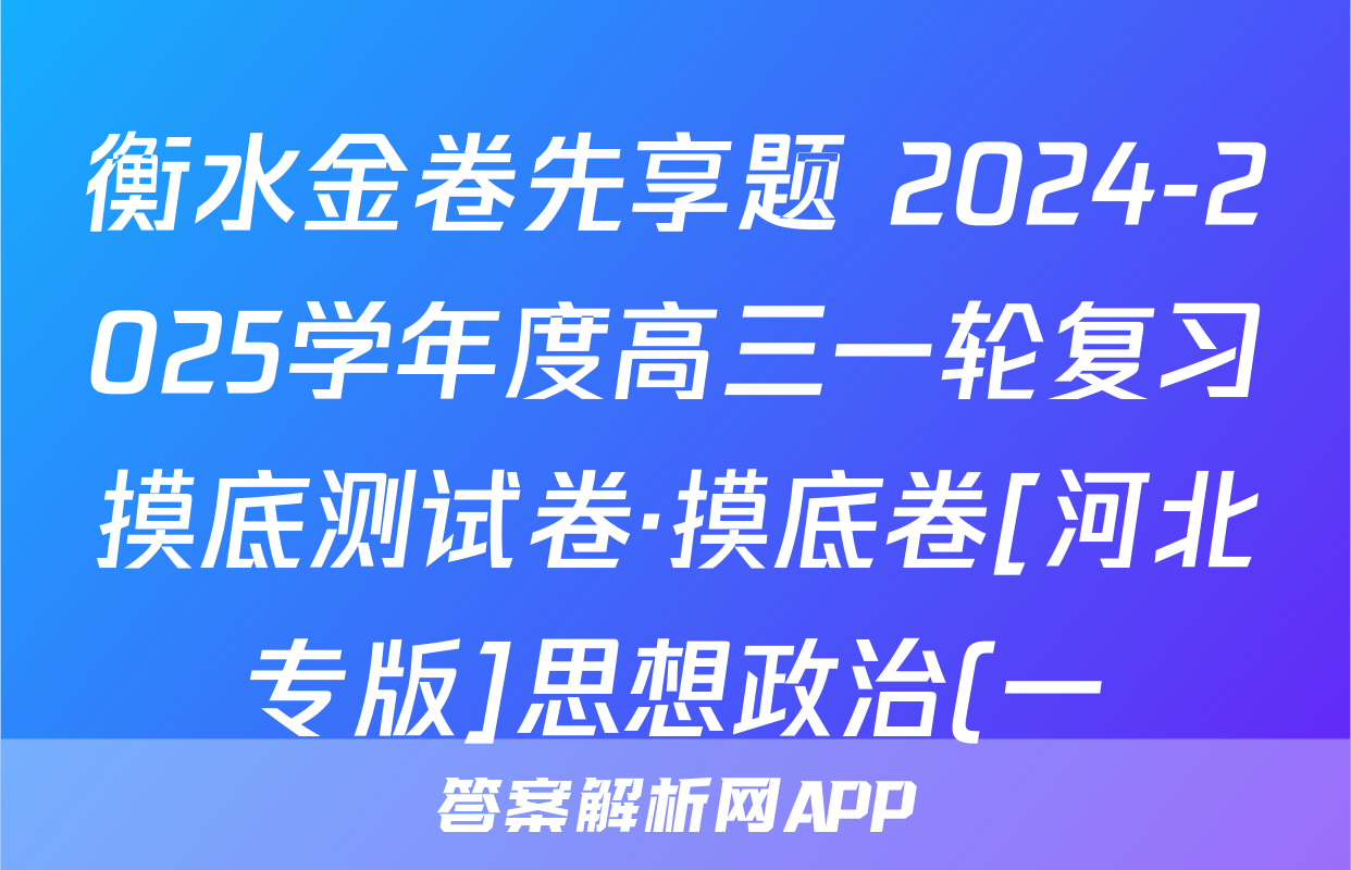 衡水金卷先享题 2024-2025学年度高三一轮复习摸底测试卷·摸底卷[河北专版]思想政治(一)1答案