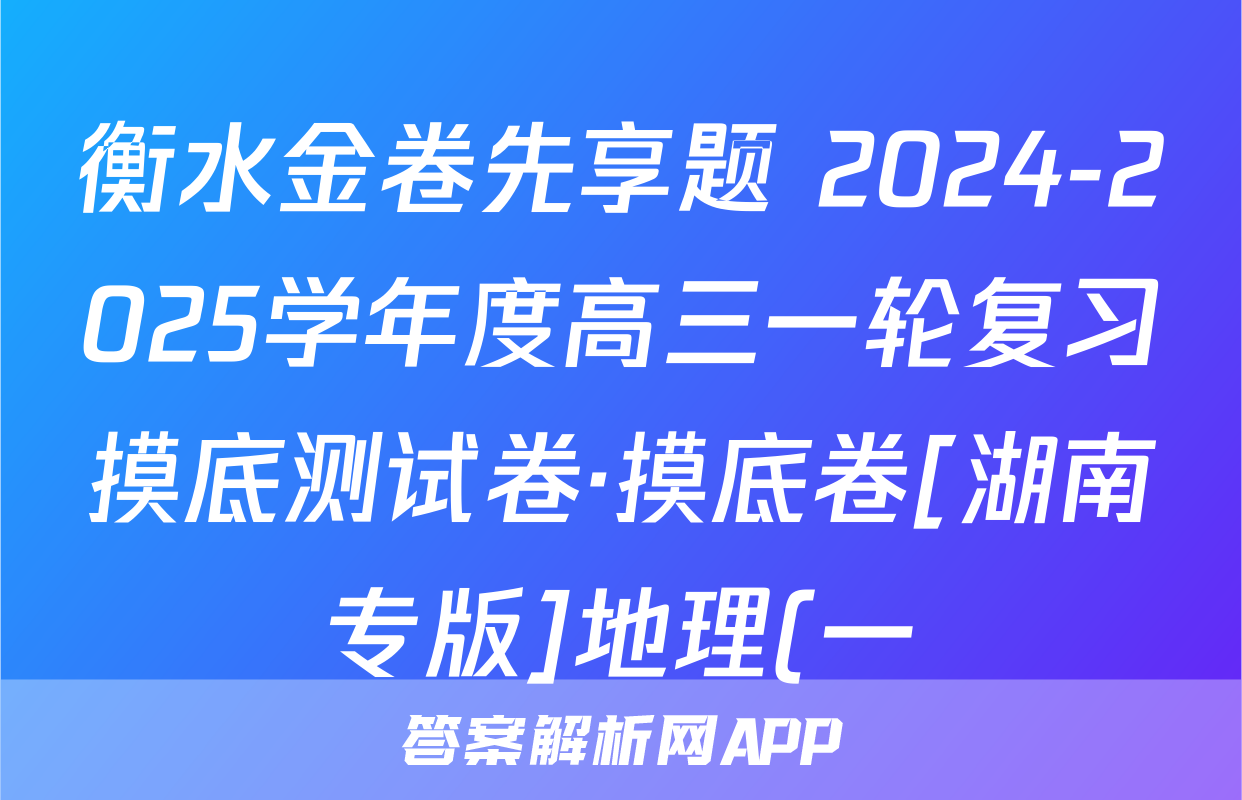 衡水金卷先享题 2024-2025学年度高三一轮复习摸底测试卷·摸底卷[湖南专版]地理(一)1答案