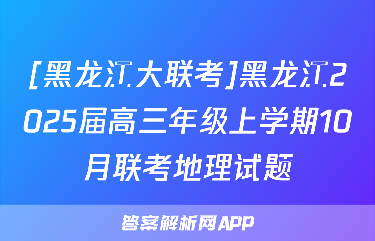 [黑龙江大联考]黑龙江2025届高三年级上学期10月联考地理试题