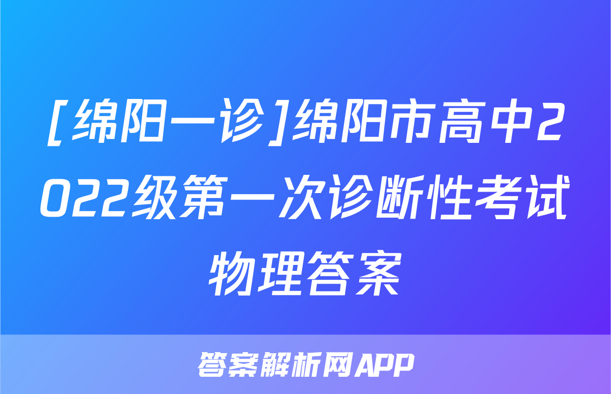 [绵阳一诊]绵阳市高中2022级第一次诊断性考试物理答案